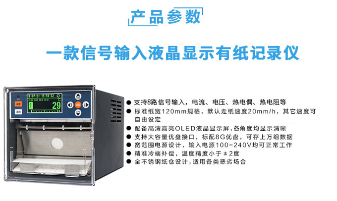 SIN-R1200有紙記錄儀打印記錄功能采用進口固定式熱敏頭,無筆墨消耗,無筆位誤差,抗震動。記錄儀為萬能信號輸入,能夠記錄溫度、溫濕度、電流、電壓、壓力、流量、液位等現場所有信號。